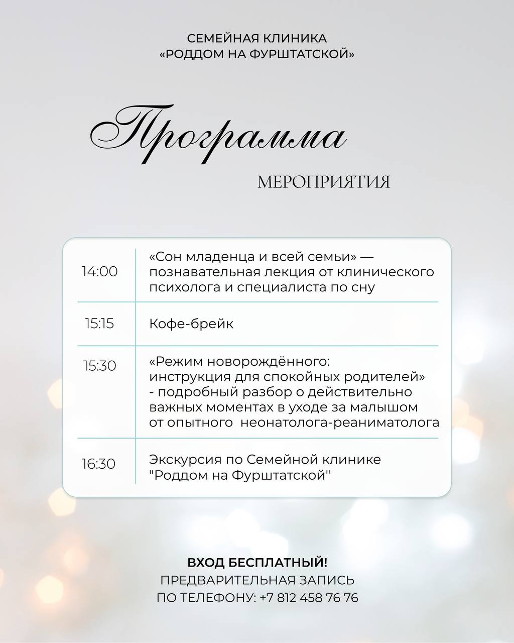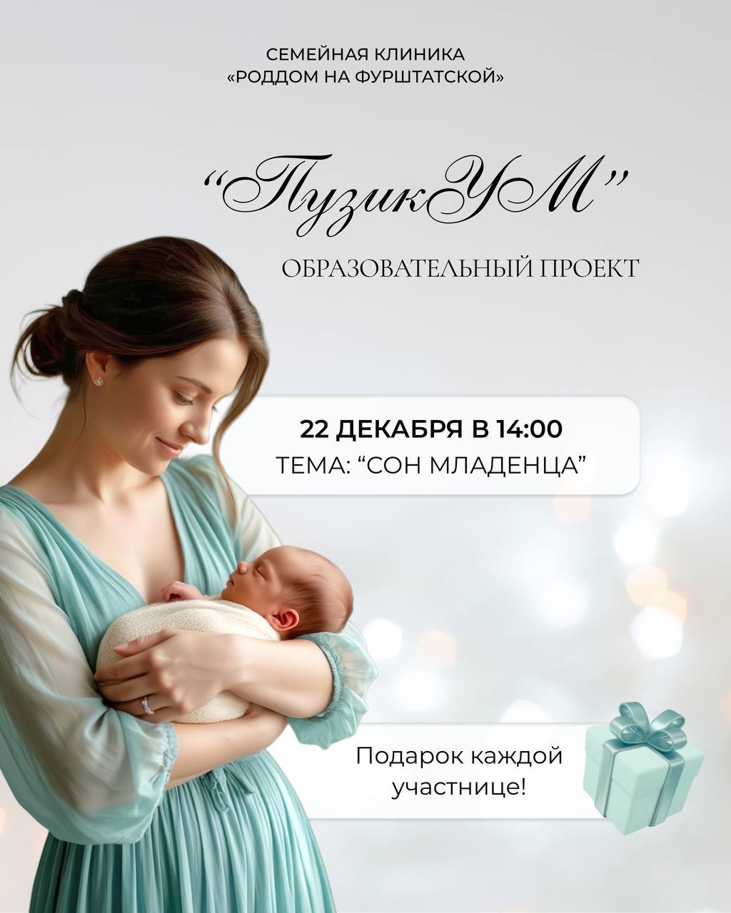 14.00 — «Сон младенца и всей семьи» — познавательная лекция от клинического психолога и специалиста по сну.